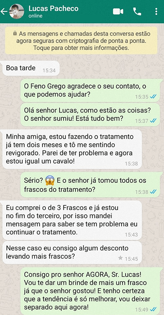 Por isso, garantimos: se por algum motivo você não ficar satisfeito com o Feno Grego Premium, você terá até 30 dias após a compra para solicitar a devolução do produto e então, DEVOLVEREMOS 100% DO SEU DINHEIRO, sem burocracia.