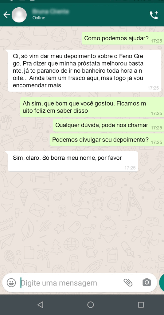 “Acredite, Feno Grego Premium alivia e muito os sintomas. Eu saia para ir ao banheiro toda hora, com um jato fraco. Agora, não é mais assim! Tenho potencia! “